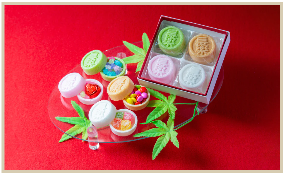 最中のフタを開くと、金平糖(和菓子)やチョコレート(洋菓子)など子どもから大人まで人気のお菓子が!内祝いのお返しや贈答の品としても人気の商品です。