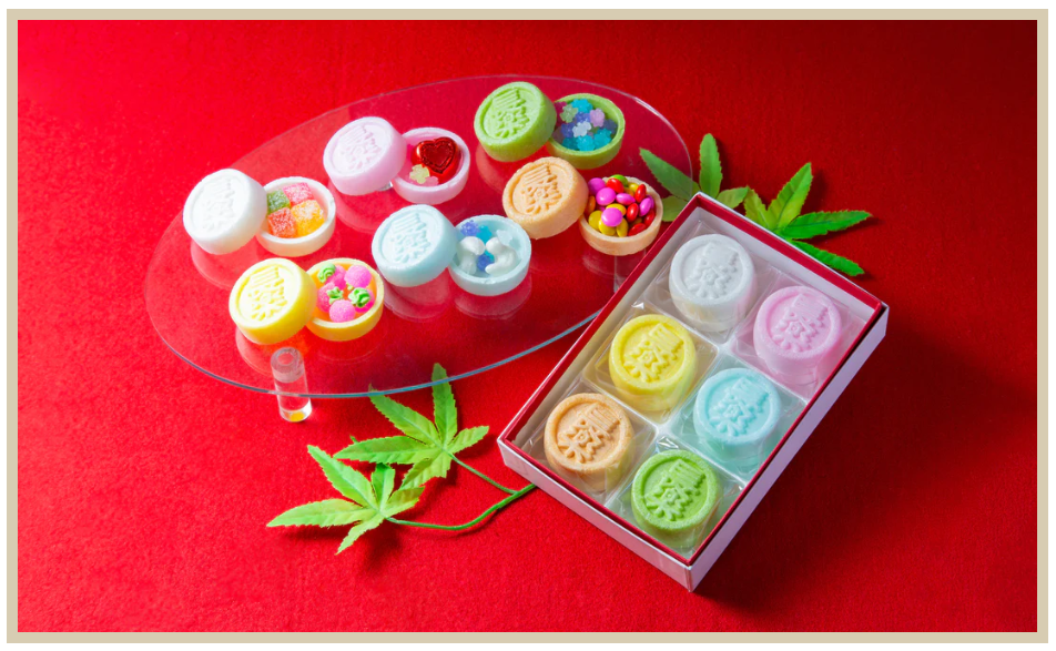 愛らしい小箱にこんぺいとうなど日本でおなじみのお菓子を詰め込みました。