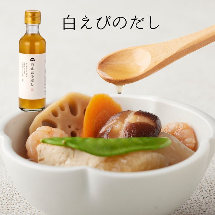 一定の期間しか漁獲できない富山湾の「白えび」をもっと身近に、もっと白えびの美味しさを日頃のお料理に使えたら・・・と思い開発したものが「白えびのだし」です。