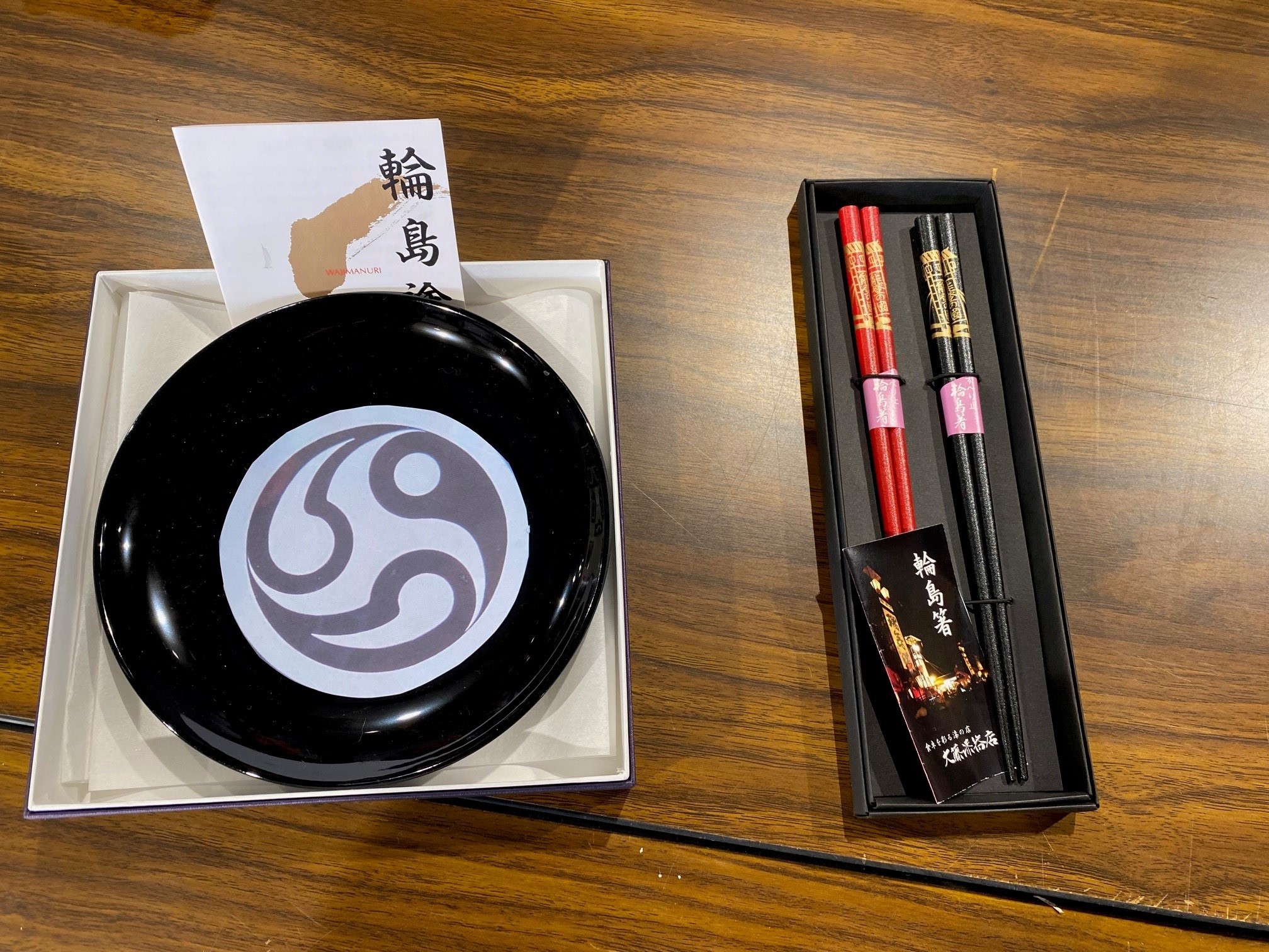 <p>輪島塗のお皿か和太鼓用のバチのどちらかをお選びいただきます。<br>
