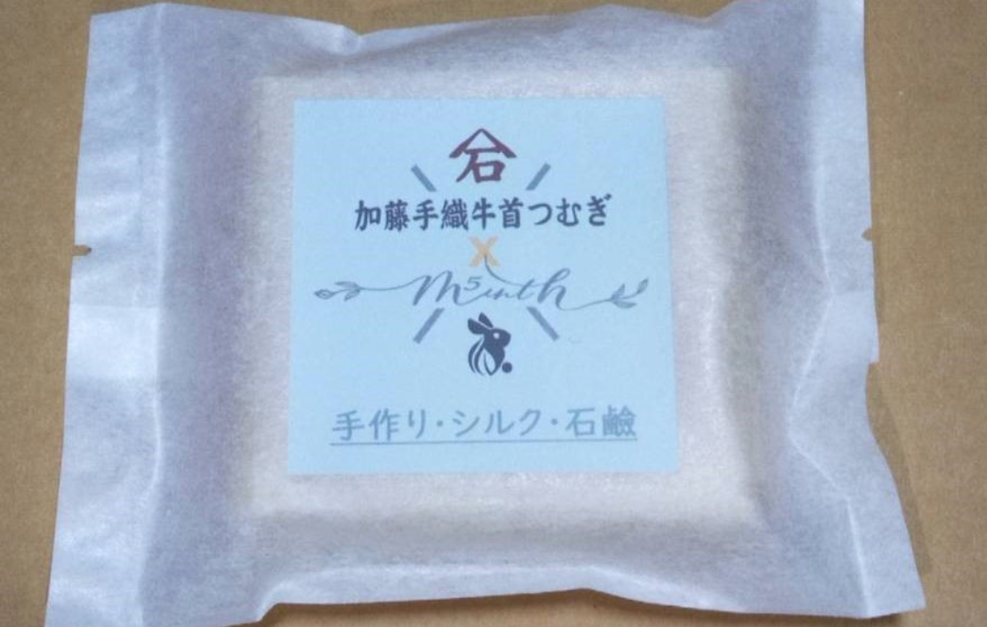 繭から牛首紬の原料となる糸を挽いた後、残った糸屑を加工して手作りシルク石鹸にしました。<br>
