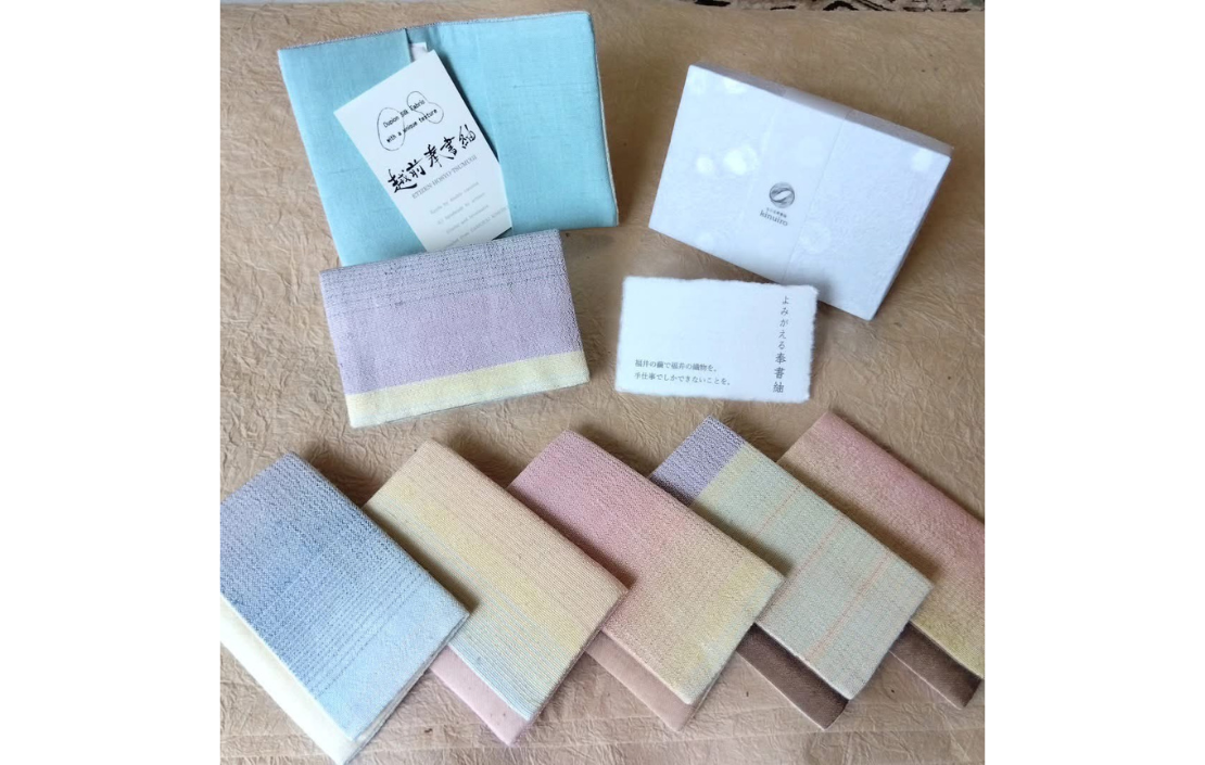 加藤手織り牛首紬×越前奉書紬のコラボレーション商品。<br>