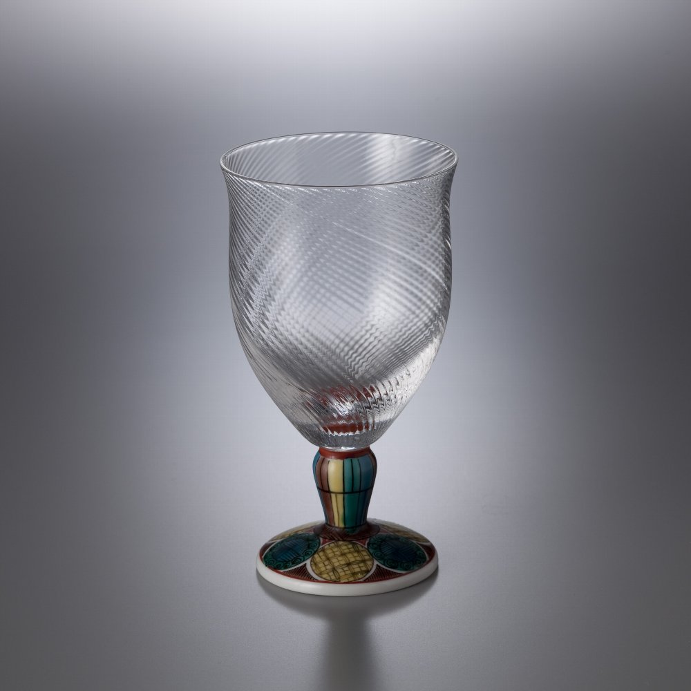 九谷焼磁器と手作りの吹き硝子(江戸硝子)を独自の技術により融合させた九谷和グラスシリーズのフリーグラス。