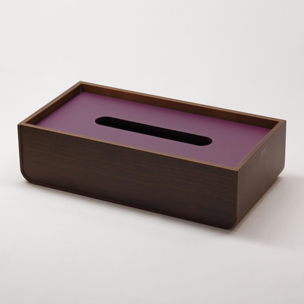 曲げの技術を使って優しいUラインな形状に。 ティッシュは箱から出してセットします。 置き蓋式です。